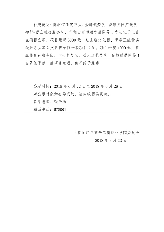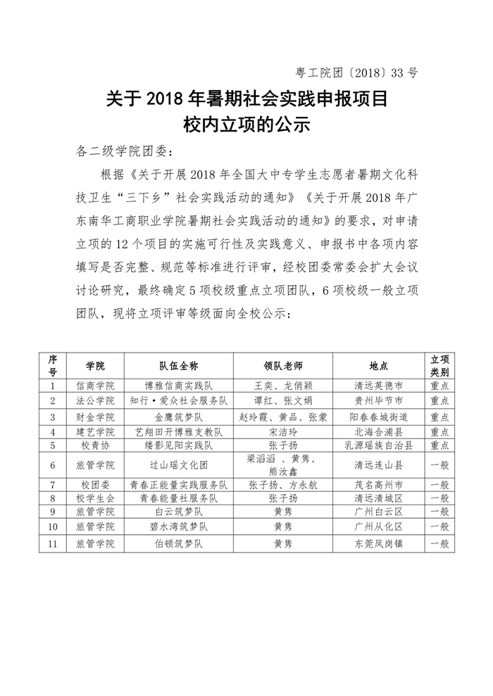 关于2018年暑期社会实践申报项目校内立项的公示