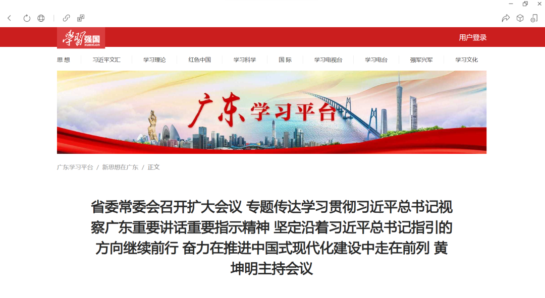 省委常委会召开扩大会议 专题传达学习贯彻习近平总书记视察广东重要讲话重要指示精神(新闻稿)