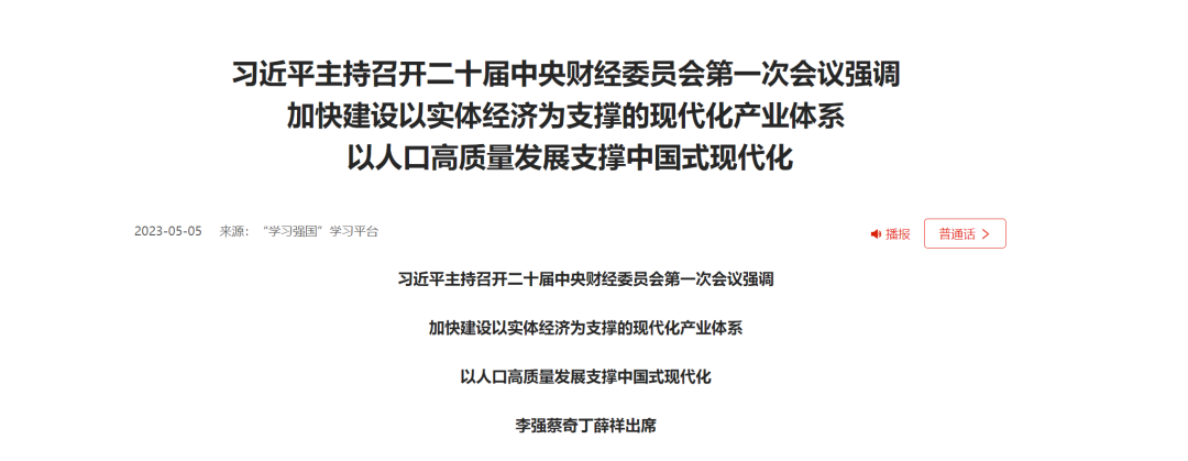 习近平总书记在二十届中央财经委员会第一次会议上的讲话(新闻稿)