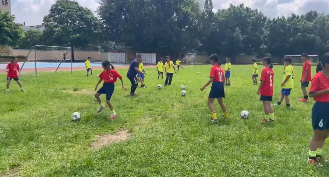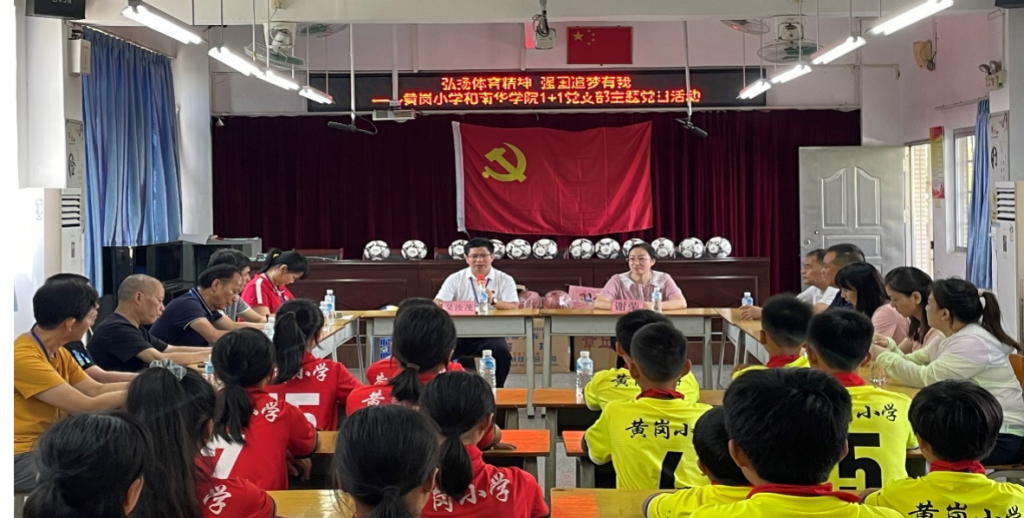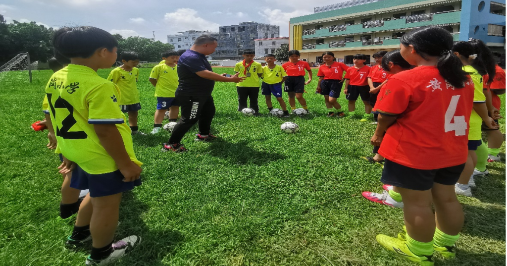 黄岗小学是肇庆市足球特色学校,近年来积极组织开展足球赛事,以此带动学校体育工作的发展。因办学条件限制,该校没有专业的足球教练,体艺部党支部教师充分发挥党员的先锋模范作用,主动提供志愿帮扶,为孩子们带来专业的技术指导。教学内容从最基本的脚弓传球到运球过杆,再到战术配合、比赛规则等等,孩子们认真听讲,积极互动,气氛热烈。