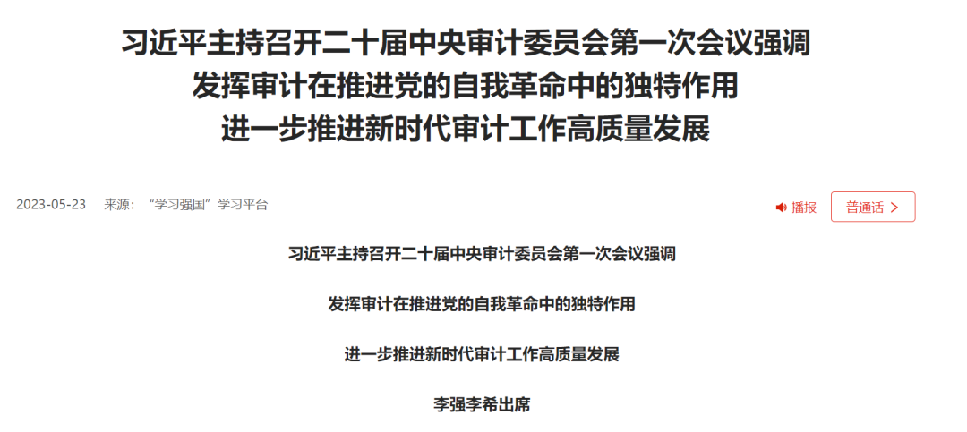 习近平总书记在二十届中央审计委员会第一次会议上的重要讲话(新闻稿)