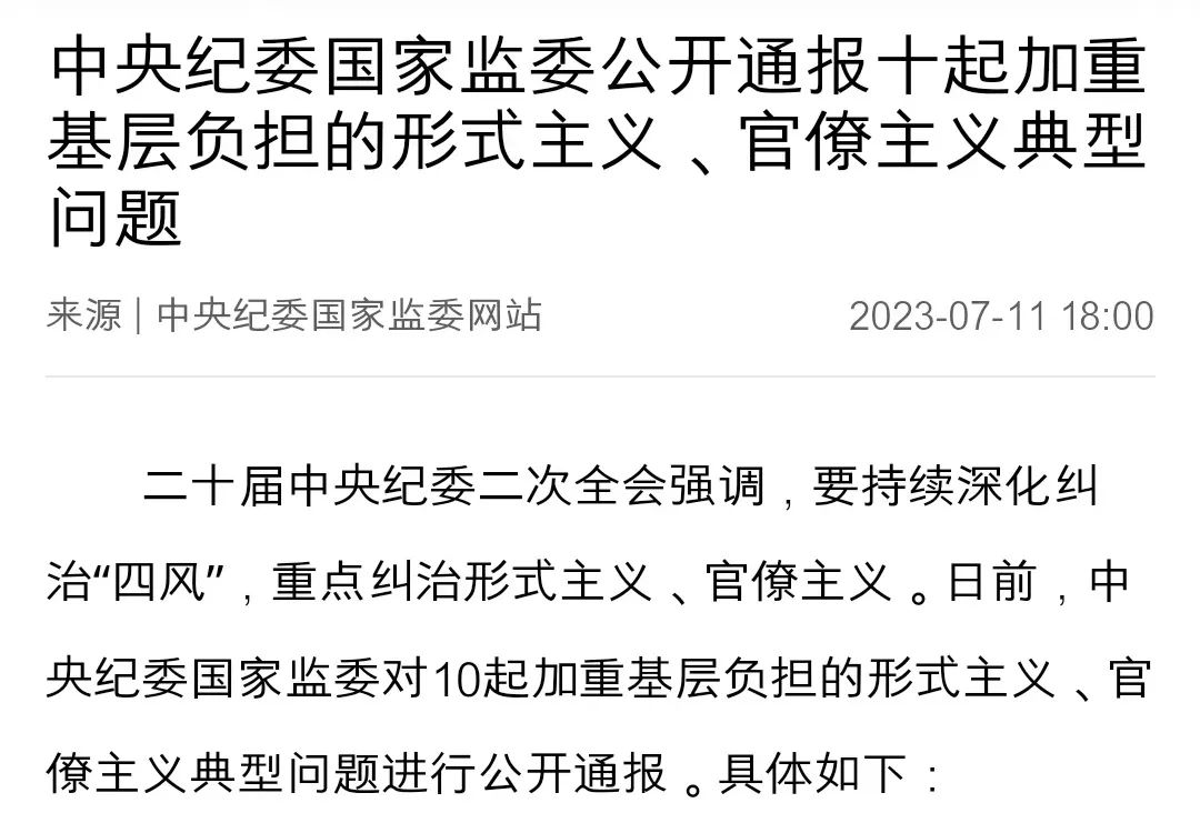 1.中央纪委国家监委公开通报十起加重基层负担的形式主义、官僚主义典型问题