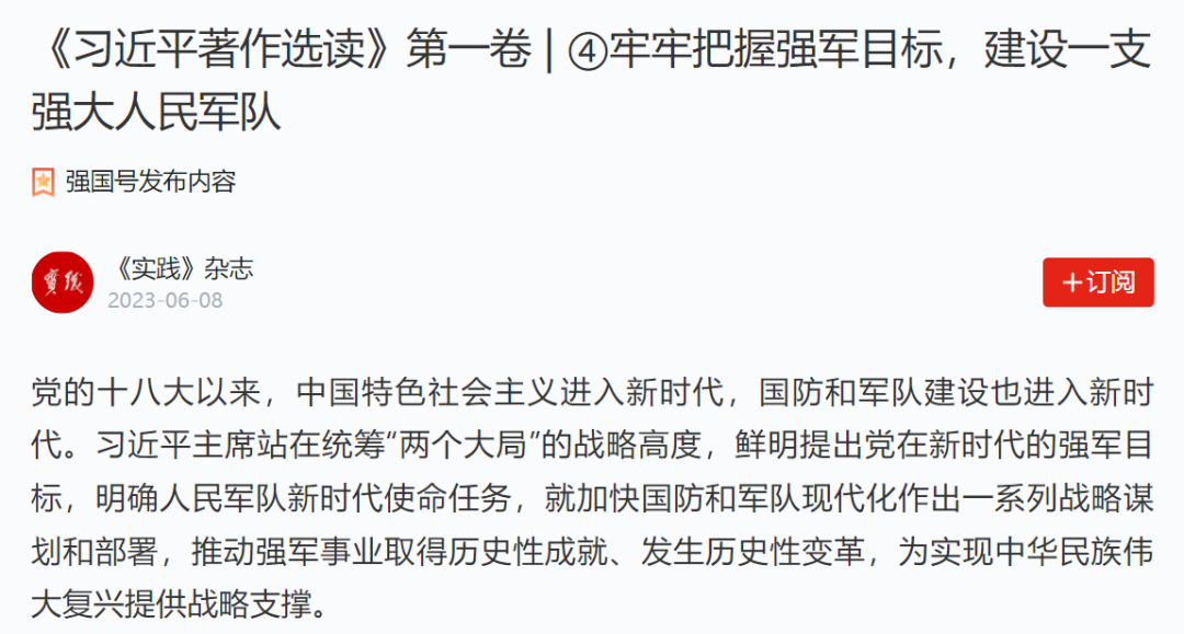3.《习近平著作选读》第一卷“牢牢把握强军目标,建设一支强大人民军队”(91-95页)