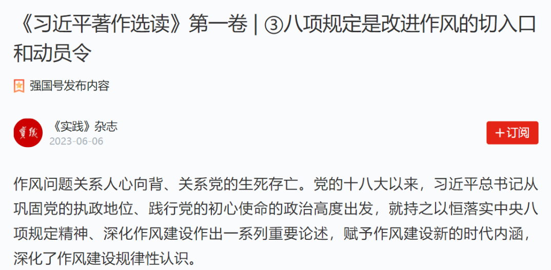 2.《习近平著作选读》第一卷“八项规定是改进作风的切入口和动员令”(87-90页)
