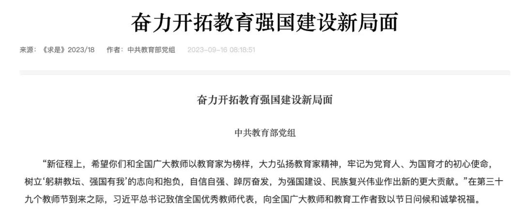中共教育部党组《求是》撰文:奋力开拓教育强国建设新局面。