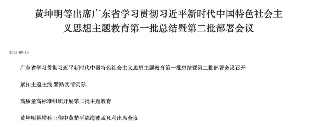 黄坤明在广东省学习贯彻习近平新时代中国特色社会主义思想主题教育第一批总结暨第二批部署会议上的讲话(新闻稿)