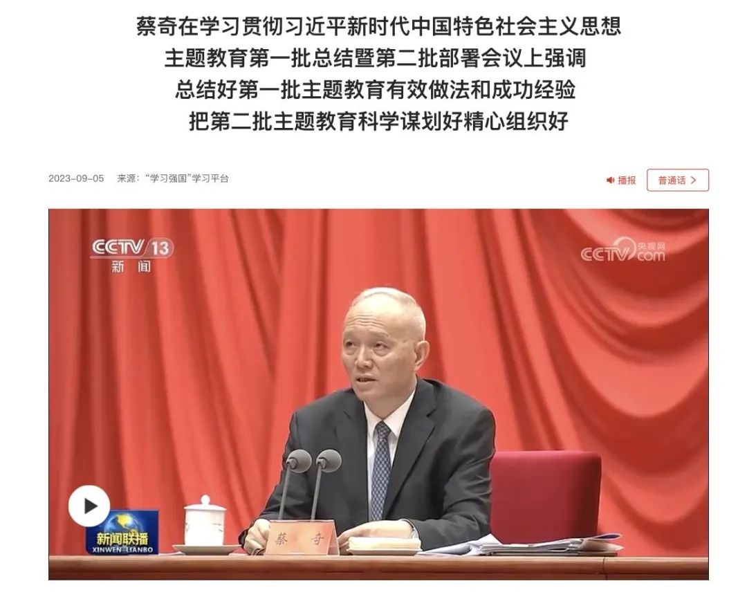 蔡奇在学习贯彻习近平新时代中国特色社会主义思想主题教育第一批总结暨第二批部署会议的讲话(新闻稿)