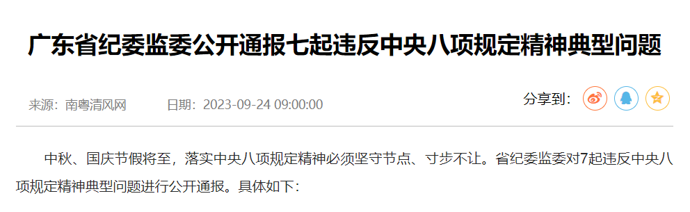 4.广东省纪委监委公开通报七起违反中央八项规定精神典型问题