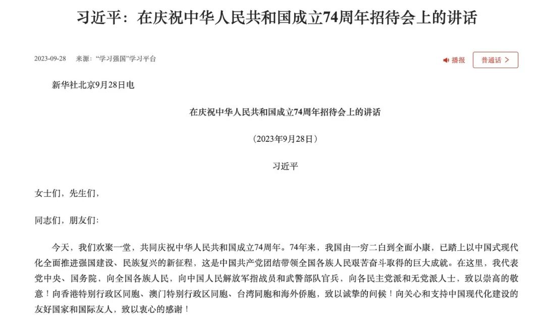 2.习近平总书记在庆祝中华人民共和国成立74周年招待会上的讲话(全文)