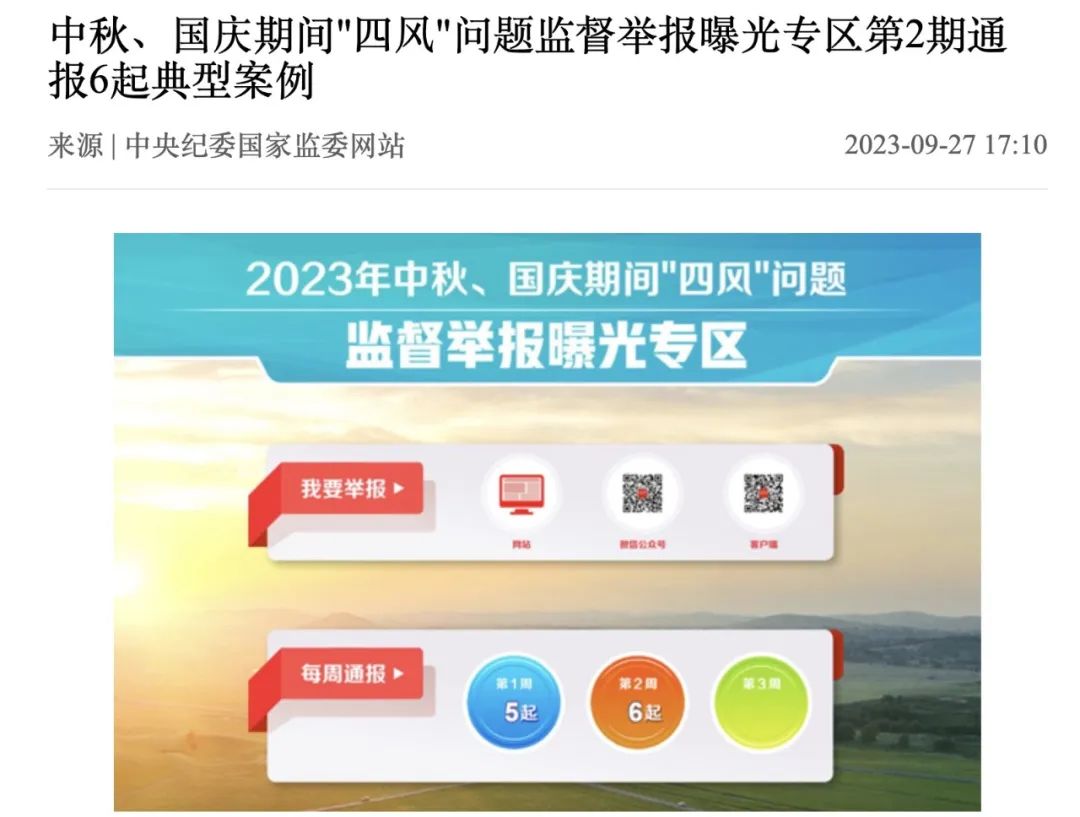 4.中秋、国庆期间“四风”问题监督举报曝光专区第2期通报6起典型案例