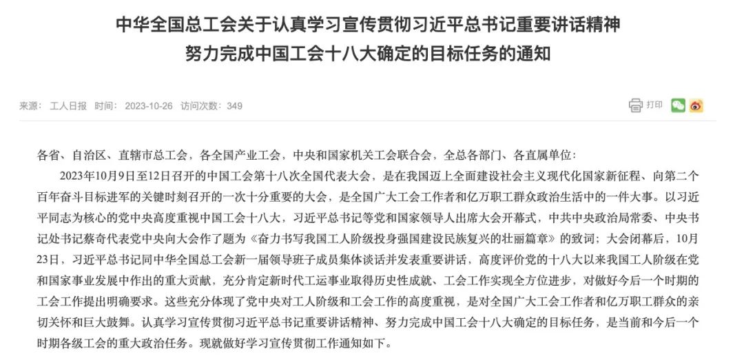 3.中华全国总工会关于认真学习宣传贯彻习近平总书记重要讲话精神努力完成中国工会十八大确定的目标任务的通知(全文)