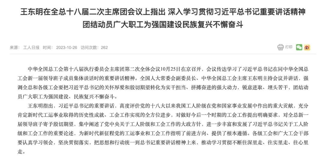 2.王东明同志在全总十八届二次主席团会议上的讲话精神(新闻稿)