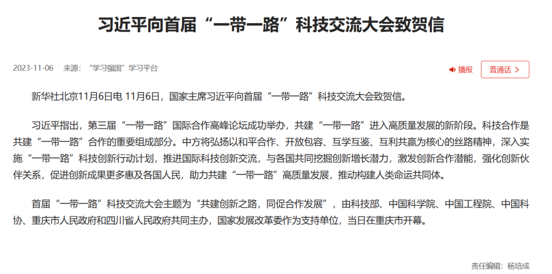习近平总书记向首届“一带一路”科技交流大会致贺信(新闻稿)