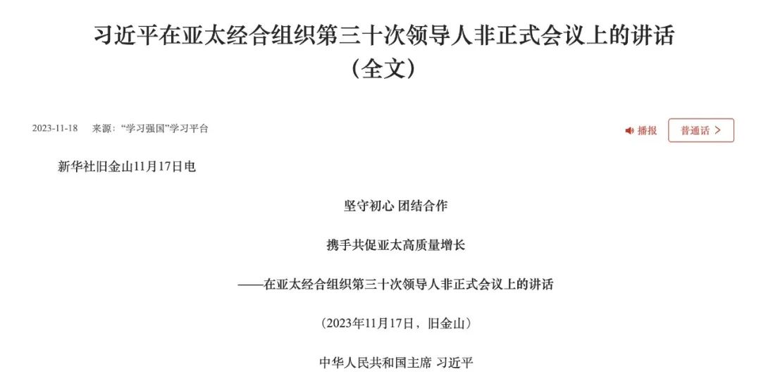 3.习近平总书记在亚太经合组织第三十次领导人非正式会议上的讲话(全文)