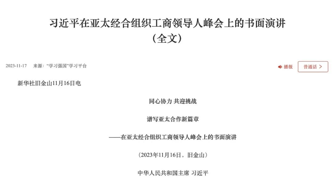 2.习近平总书记在亚太经合组织工商领导人峰会上的书面演讲(全文)