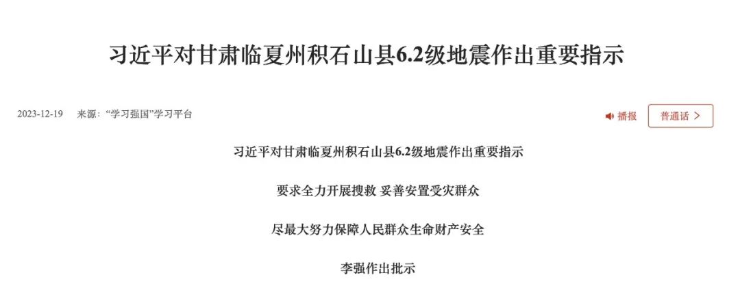 3.习近平总书记对甘肃临夏州积石山县6.2级地震作出的重要指示精神(新闻稿)