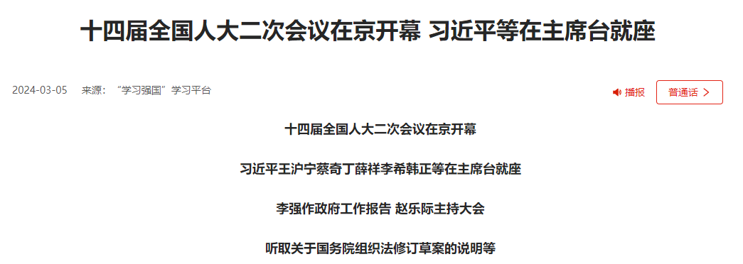 2.十四届全国人大二次会议在京开幕 习近平等在主席台就座(新闻稿)。