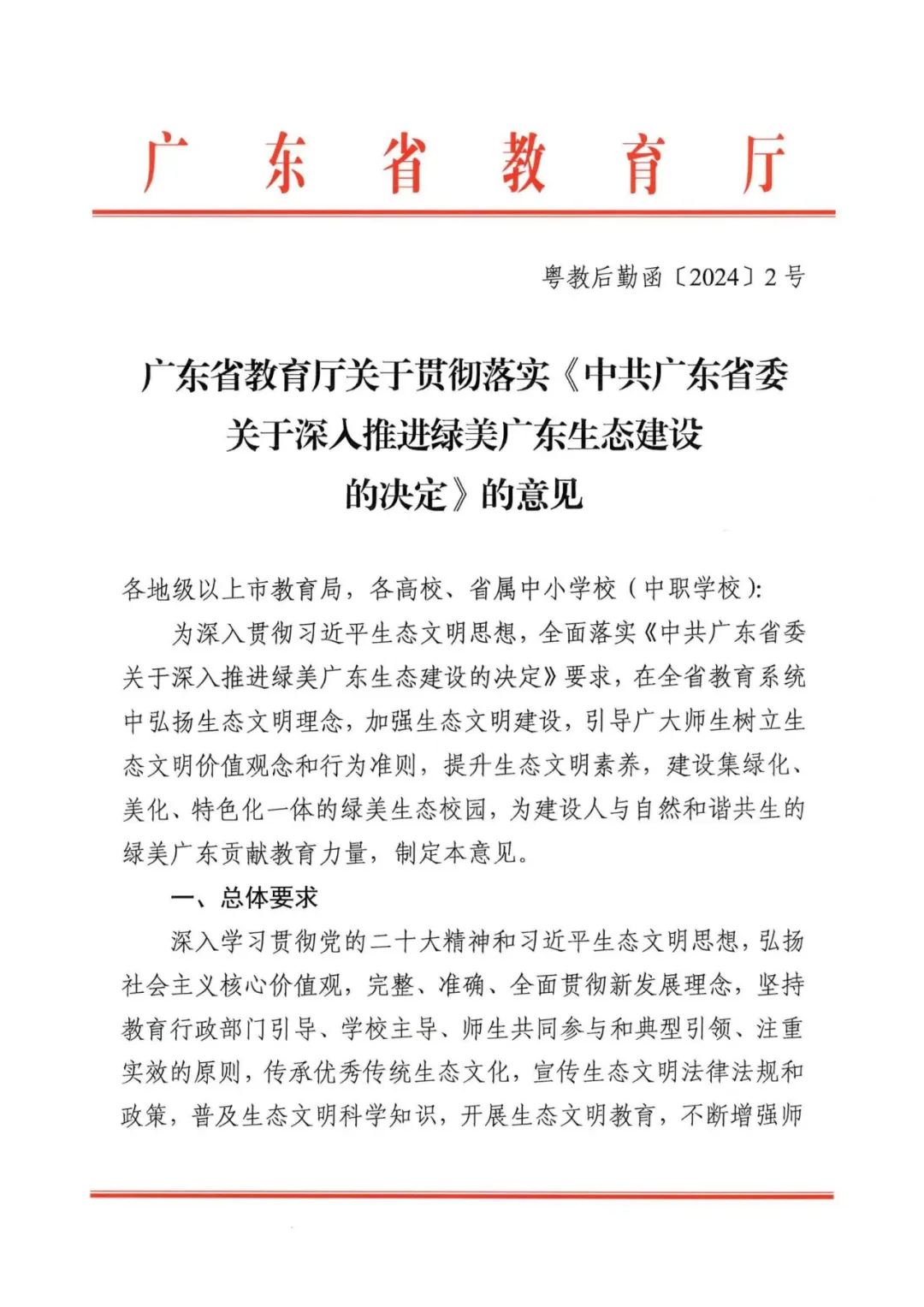 2.《广东省教育厅关于贯彻落实<中共广东省委关于深入推进绿美广东生态建设的决定>的意见》。