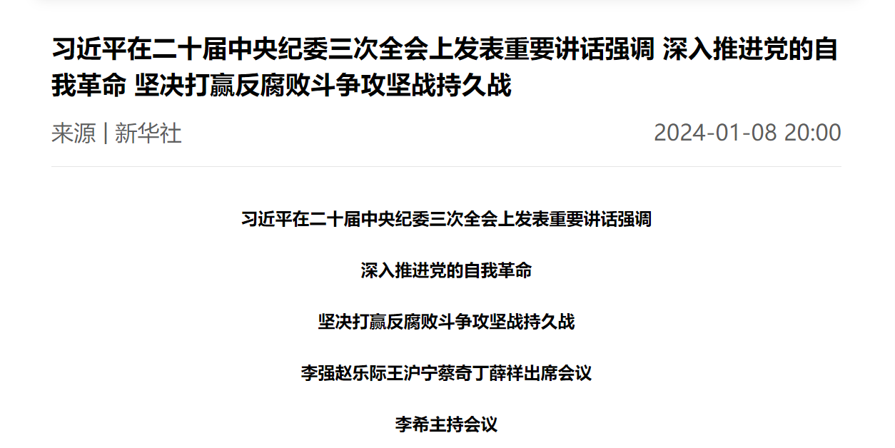 习近平总书记在二十届中央纪委三次全会上发表的重要讲话。