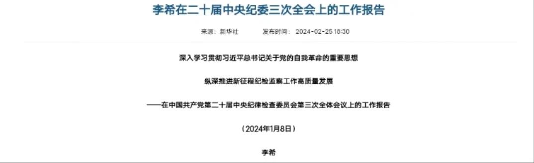 1.李希在二十届中央纪委三次全会上的工作报告。