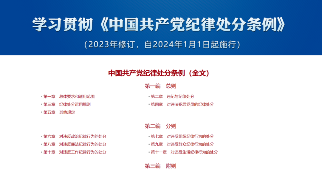 3.结合共产党员网、中央纪委国家监委网党纪学习教育专栏、学习贯彻纪律处分条例专栏中每日一课、学习问答、图解纪法等模块,对《中国共产党纪律处分条例》第十七条至第三十五条进行学习。