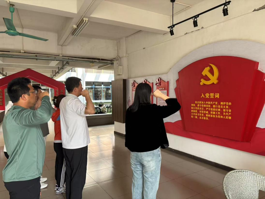 面对鲜红党旗,体艺部党支部谢荣书记带领全体党员重温入党誓词。宣誓墙前,同志们逐句对照誓词原文,重点围绕“严守党的纪律”“为共产主义奋斗终身”等关键词开展自查自省。
