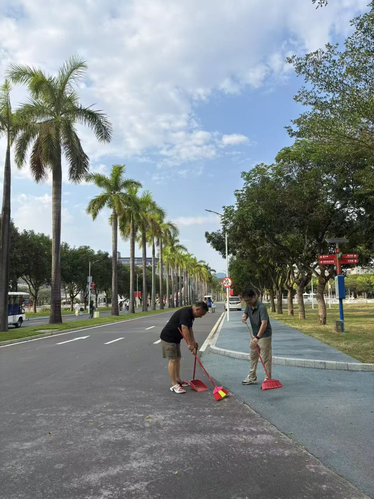 图1 体育部教师清扫博雅大道