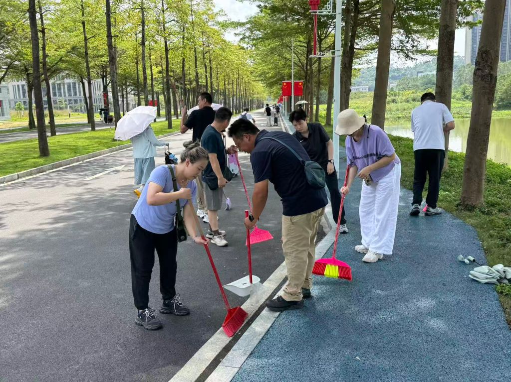 根据学校爱国卫生工作区域划分,体育教学部本次负责博雅大道段的清洁任务。在支部书记的带领下,同志们手持清洁工具,对博雅大道沿线及周边区域进行了彻底清扫。