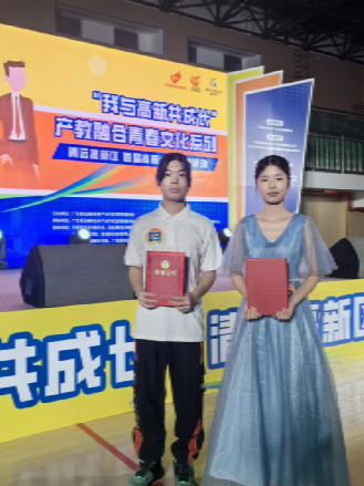 3月12日,首届清远高新区“高新大使”评选活动在广东工程职业技术学院举行。我校体艺部张含老师指导并带领我校23级工商班魏远同学、22级国商班张栩豪同学参加了此次活动,并荣获优秀奖项。