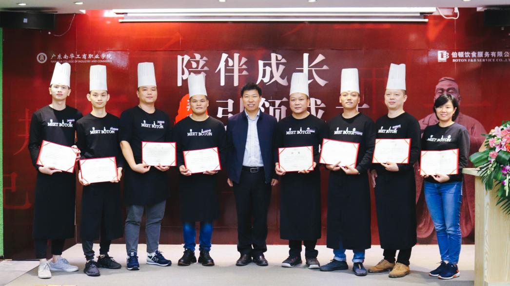 2017年与东莞市伯顿饮食服务有限公司签订现代学徒制人才培养合作协议 |