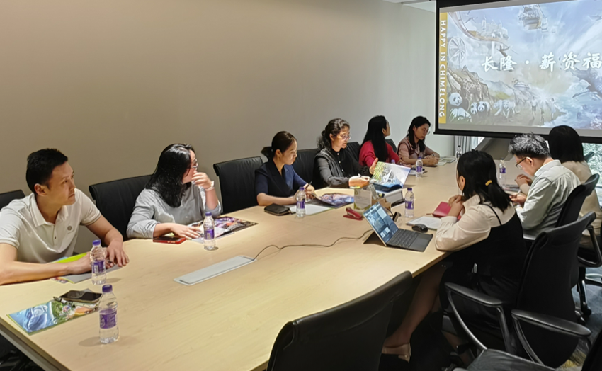 长隆集团人力资源部招聘总监詹伟煌和招聘经理朱艳君热情接待了王荣光副校长一行。会上,招聘经理朱艳君为与会人员介绍了长隆集团的企业文化、运营模式和人才需求。招聘总监詹伟煌表示,广州长隆集团的发展理念与文化旅游学院的专业建设理念深度契合,希望双方能开展多层次、多形式、多领域的合作,比如通过顶岗实习、现代学徒制、产业学院、长隆冠名班和共建实践教学基地等多种合作模式,助力毕业生高质量就业。