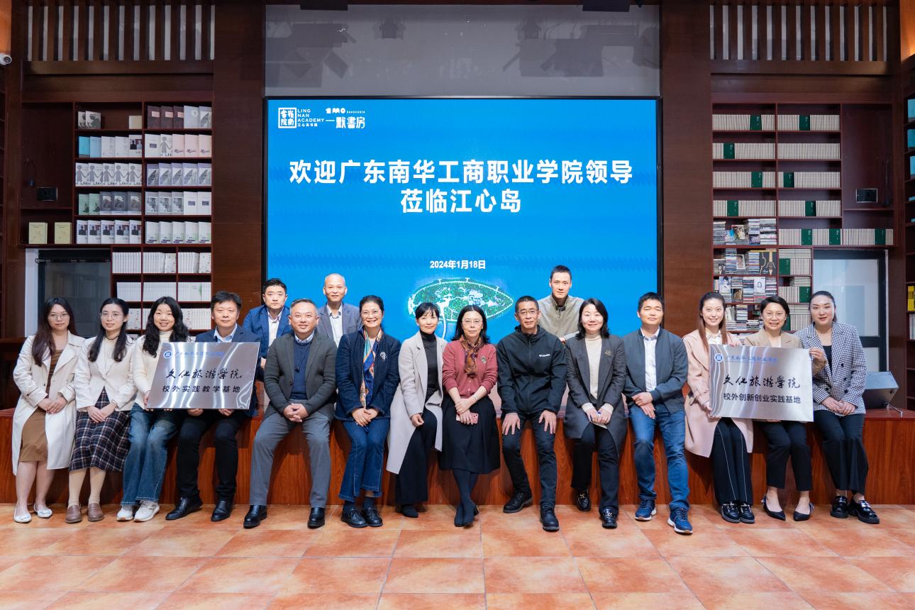 为访企拓岗促就业和促进产教融合,广东南华工商职业学院副校长唐晓林携文化旅游学院副院长谭金凤、梁滔滔以及学院骨干教师,于2024年1月18日上午前往广东首家岭南书院——江心岛书院走访,参观书院的郭南斯艺术馆、北江讲堂、中华善本馆等功能场所,深入了解企业文化和业务范围。