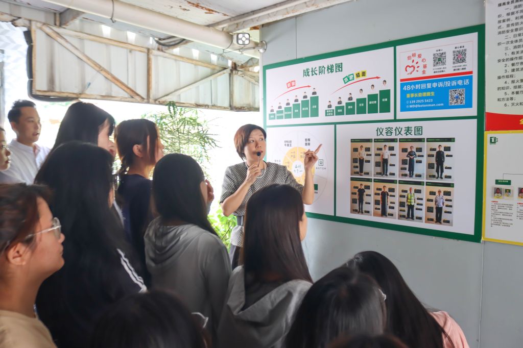 在参观过程中,企业合伙人兼行政人力总监陈国凤女士和厨房资深主管张嘉旺先生向学生们详细介绍了公司的企业文化和团队构成,并带领他们参观了工作环境,让学生们亲身感受到了企业的工作氛围。学生们在讲解过程中积极参与互动,提出了自身关注的问题。