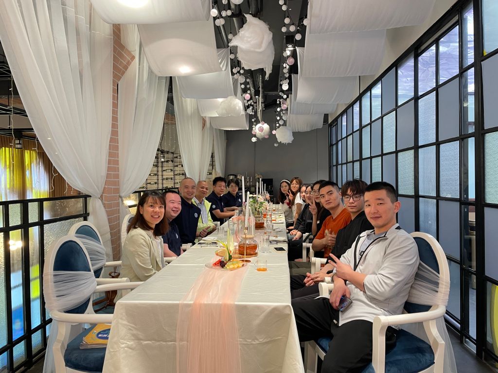 2023 年 5 月 12 日,文化旅游学院烹饪工艺与营养专业教研室黄智洋、张树清、王晓强、胡宇子,学生工作办公室熊汝鑫、王宏博、刘晓欢一行七人来到了东莞伯顿常平店,与在此实习的2023届毕业生开展了座谈会,会上,每位在岗学生就当前的工作环境、内容、氛围、角色转换、个人发展和工作体会等方面发表了自己的感悟和收获。老师们对在岗学生的学习态度和学习情况给予了肯定,并鼓励大家珍惜实习机会,充分利用企业资源优势,努力学习,不断提高专业技能,增强自身合作意识和创新精神,为将来就业和服务社会打下良好的基础。