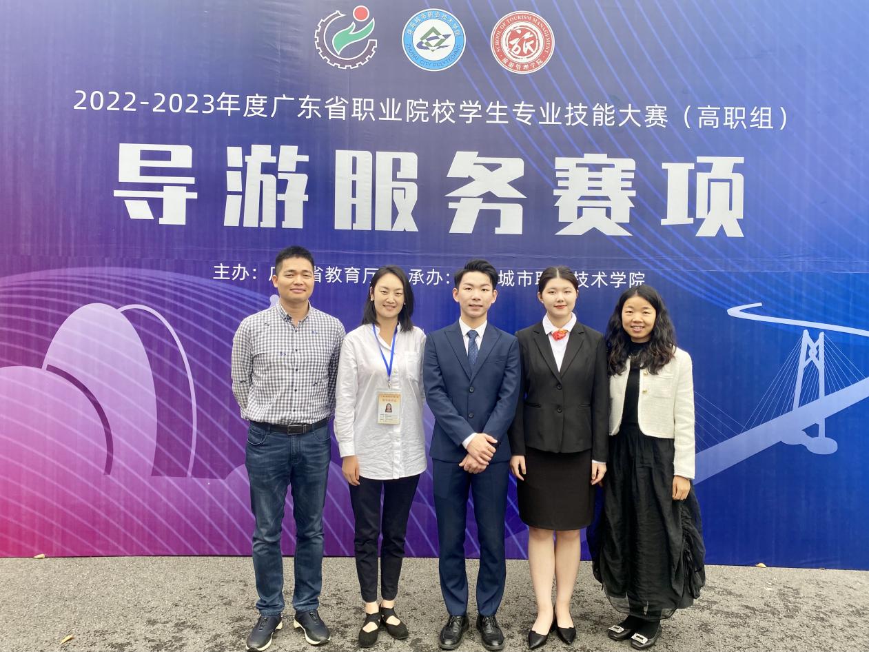 4月7日至9日,2022-2023年度广东省职业院校学生技能大赛“导游服务”赛项在珠海城市职业学院举行,来自省内50所职业院校、97名参赛选手参加了本次比赛。我校旅游管理专业组成了两支参赛队伍参加了比赛,第一队参赛学生为潘思乔、指导老师潘新洁;第二队参赛学生为徐飞杨、指导老师刘又榕;领队为梁滔滔副院长。经过三天紧张激烈的角逐,我校2021级旅游管理专业学生徐飞杨、潘思乔分别以第6名和第19名的好成绩获得一等奖和二等奖。