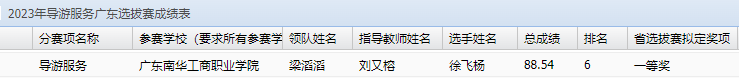 文化旅游学院学子获2022-2023年度广东省职业院校学生技能大赛“导游服务”赛项一等奖