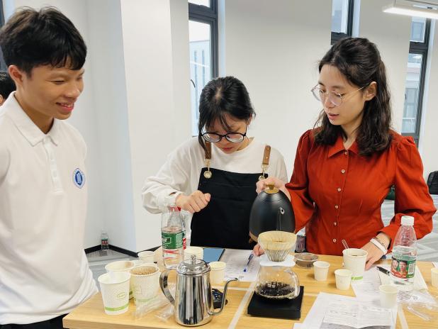 2023年3月22日,广州沐辰学院校长、“南华珠江学者”潘家佳教授携文化旅游学院烹饪工艺与营养专业负责人黄智洋、专任教师王晓强和张树清以及辅导员刘晓欢老师带领该专业12位同学参加了 “粤港澳大湾区精品咖啡联盟咖啡冲煮工艺研讨会”。该联盟由广州沐辰学院、广东南华工商职业学院、清远工贸职业技术学校、广东生态工程职业学院作为原始成员单位于2022年成立,已运行一年多。该联盟聚焦粤港澳大湾区职业院校教育合作,专注精品咖啡在产教融合领域的深耕,助力职业院校咖啡课程的改革和升级,积极推动咖啡元素的创业就业和产业发展。