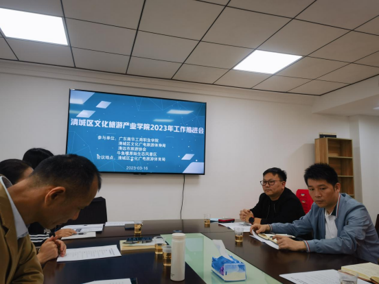 2023年3月20日上午,清城区文化旅游产业学院成员在清远市清城区政府的会议室召开了2023年工作推荐会。清城区文化广电旅游体育局局长郭桂星、副局长陈倩华,清远市旅游协会秘书长张秀莲,副秘书长陈峰、黄俏婷,清远市牛鱼嘴原始生态风景区总经理刘岩、广东工商职业学院文化旅游学院副院长谭金凤、院长助理陈晓华等参加会议。
