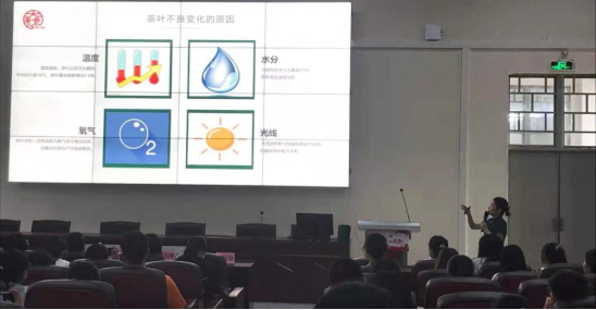 随后,茶艺师梁紫珊先后介绍了茶的分类、选茶、茶叶的存储、冲泡技巧、茶事礼仪等,在座同学都听得津津有味,也很积极回答老师提出的问题。现场还进行了一场赏心悦目的茶艺表演。