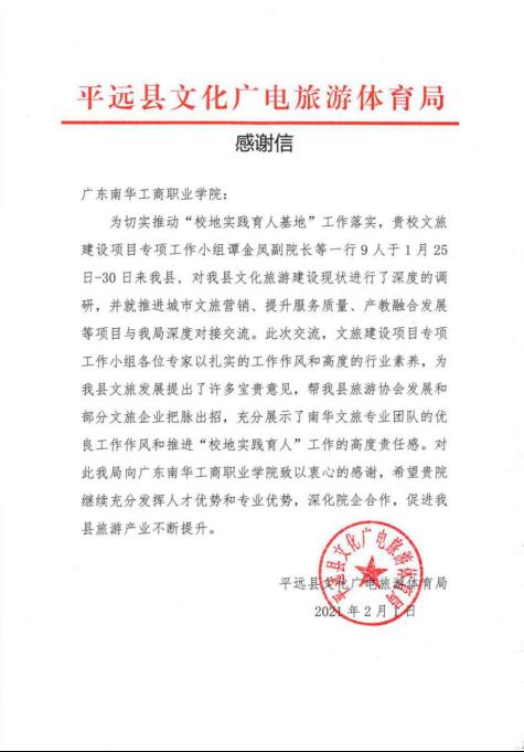 图十 来自平远县文化广电旅游体育局的感谢信