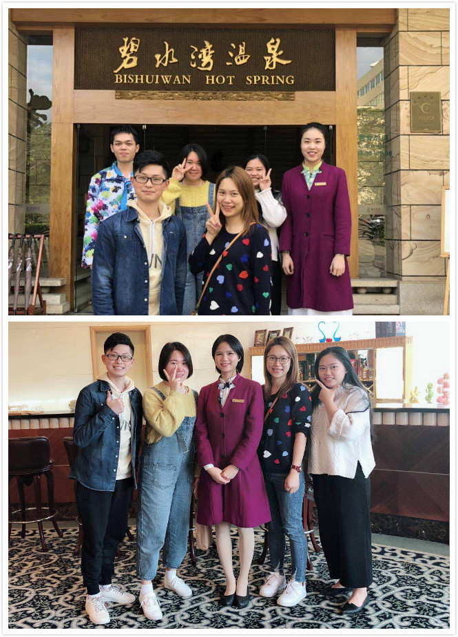 为了更好地了解学生在岗实习的状态,进一步做好毕业实习的指导工作,旅游管理学院教师自2019年1月起,到校企合作单位探访学生实习情况。2019年1月14日,酒店管理专业教师关惠贞、辅导员黄隽到从化碧水湾温泉度假村探望2016级碧水湾班顶岗实习学生。