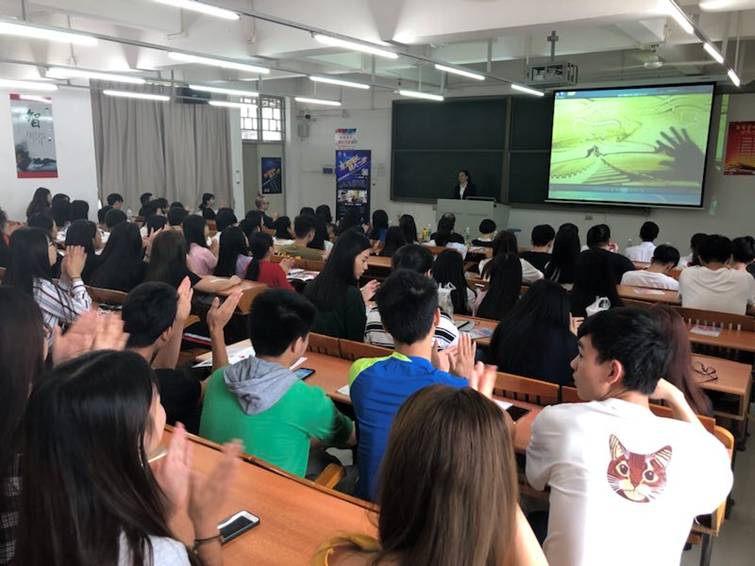 在如家工作的南华师兄师姐关天俊、钟芳琳(华南区优秀运营经理)分别和同学们分享了自己在企业的个人成长经历。人事部关丝华经理为同学们一一耐心解答疑问。