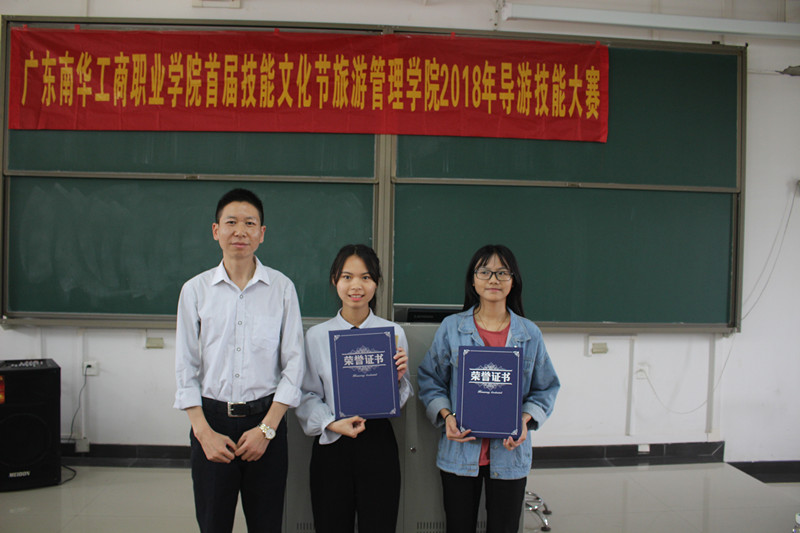 此轮半决赛共决出一等奖两名,二等奖两名,三等奖两名以及优秀奖一名, 2017级旅游管理专业黄嘉韵、张珊珊获得一等奖,将代表我校参加5月16日在清远市职业技术学院举办的 “中旅杯”导游校际大赛。