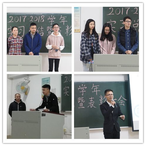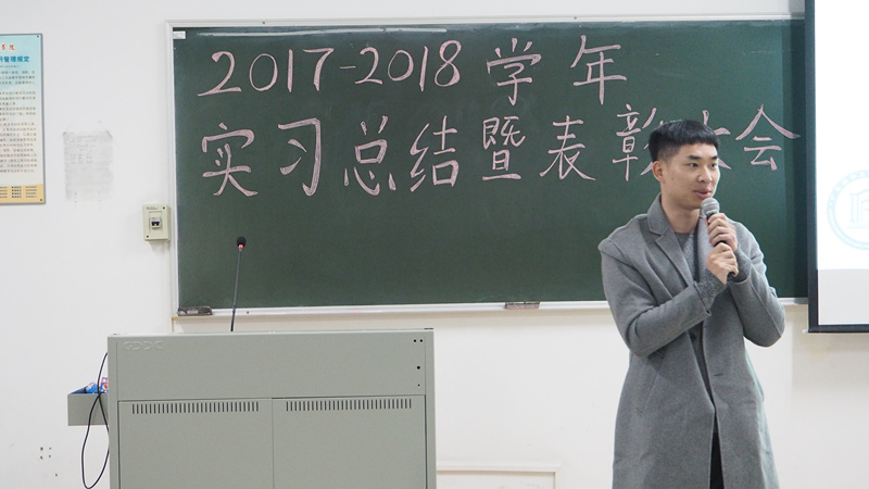 会议第二项议程,郭伟欣老师作为带队老师代表上台发言。他希望2015级的同学能通过实习完成自我探索,找准人生定位,思考自己未来发展的方向,珍惜在校的美好学习时光。对于2016级的同学,郭老师肯定了同学们实习的努力,更好地完成了自我形象管理,加深了自我认识,对于人际交往、职业技能的锻炼有明显的收获,期待大家在社会比较中不断修正自我,提升个人职业素养。