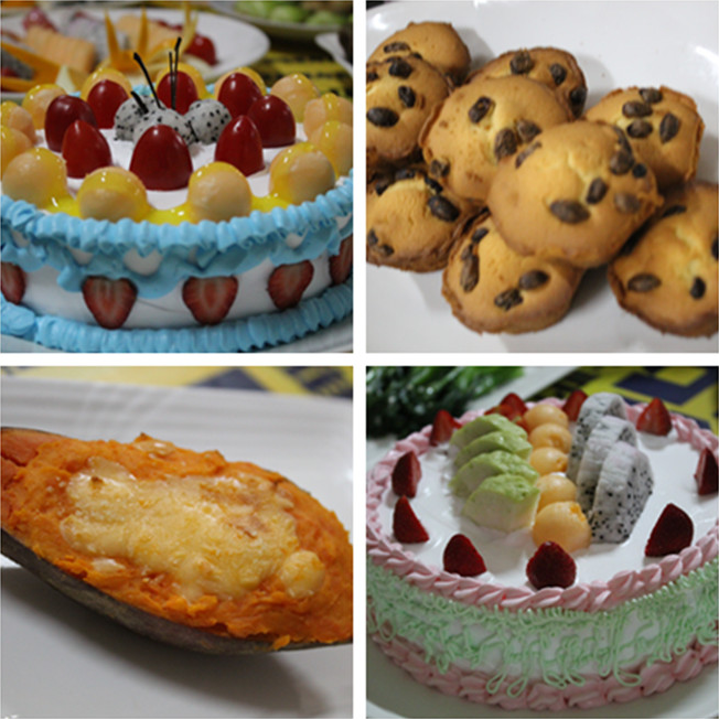在学院、系部领导的大力支持和各位老师的精心培育下,2016届烹饪工艺与营养专业的毕业生经过两年多的辛勤耕耘,成就了今天不平凡的自己。他们即将迈出校门,踏上人生发展的新旅程。当天,同学们各展才能,做出在校园里可能是最后一件的作品,并举行了作品展。白切鸡、白灼虾、水煮牛肉、清蒸多宝鱼等特色菜点仿佛是一场经典的美食盛宴。水果拼盘令人目不暇接,各色作品巧夺天工。展台上西点蛋糕琳琅满目,同学们高超的糕点制作技巧可见一斑。