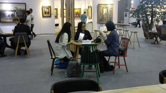 经广州琶洲会展经济促进会推荐,我院旅游管理系2013级会展专业51名学生分别于8月31日-9月1日,9月12-13日完成面试和岗前培训,负责2015第六届艺术广东·国际收藏品及艺术品博览会布展以及展中接待、现场服务与管理工作,历时5天。期间学生分别在前台、咨询、展商跟踪、、展品维护、组委会新闻部、论坛等部门工作,并协助主办方完成9个主题展和以“煽动之词”一个广东当代艺术现场为题的特别艺术项目、近10场艺术论坛讲座。指导老师为陈晓华、马佩佩老师。
