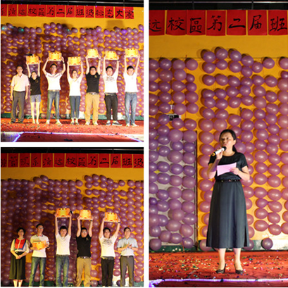 首先出场的是穿着黑白相间班服的14级碧水湾班,一句“非比寻常,碧水最强”的口号,一首《奔跑》的歌曲,洋溢着青春活力。而14级烹饪班的表演让观众眼前一亮:蓝色荧光棒拼成的“厨”字,不仅给观众们带来视觉冲击,还彰显了烹饪班的霸气十足,如口号所言“一方水土一方人,南华烹饪天下闻”。14级东方班选用白色海芋花作为班徽,象征着“东方人”的青春、活力与真诚,班歌《海芋恋》将班级活力如魔法般的传递给了观众,现场无一不为之动容。14级酒管班以充足的准备来“应战”,流畅的演说加上齐声合唱自己改编版的《那些年》,配以全班同学“脸萌”图案的班服,倍感温馨。14级旅管班的《梦想就在前方》,手挥荧光棒的旅管俊男美女,通过歌声,传达着对追求梦想从不动摇的决心,追梦少年已然在路上。压轴的是14级白云班,团结一心,班徽以四色光圈传递着“白云人”的希望、自由、理性与热情的精神。大赛期间,旅游管理系礼仪队以一首《爱因为在心中》的手语表演再次点燃赛场。最终,由14级东方班获得一等奖及最佳校园人气奖。