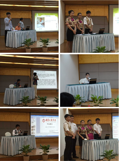 当老师们到达答辩现场,立刻被温馨的会场布置所吸引,“碧水湾班”的同学们身穿整齐的制服准备就绪。同学们被分为十个小组,按照既定顺序一一进行答辩。为提高本次毕业设计的答辩质量,此前,各指导老师本着“严格要求、公开公正”的原则,严把质量关,指导学生对论文反复修改和推敲,使毕业设计的质量得到了不断的提高。在答辩过程中,同学们均能结合自身的工作岗位来寻找研究兴趣点,并深入展开研究探索,针对答辩小组老师提出的问题,同学们能够思维敏捷,思路清晰地予以回答。各位答辩老师以认真、严谨的态度,考察了毕业生掌握专业知识的熟练程度,对同学们的答辩进行了精辟的评价,指出了毕业设计中的闪光点与不足,并提出了宝贵的意见。