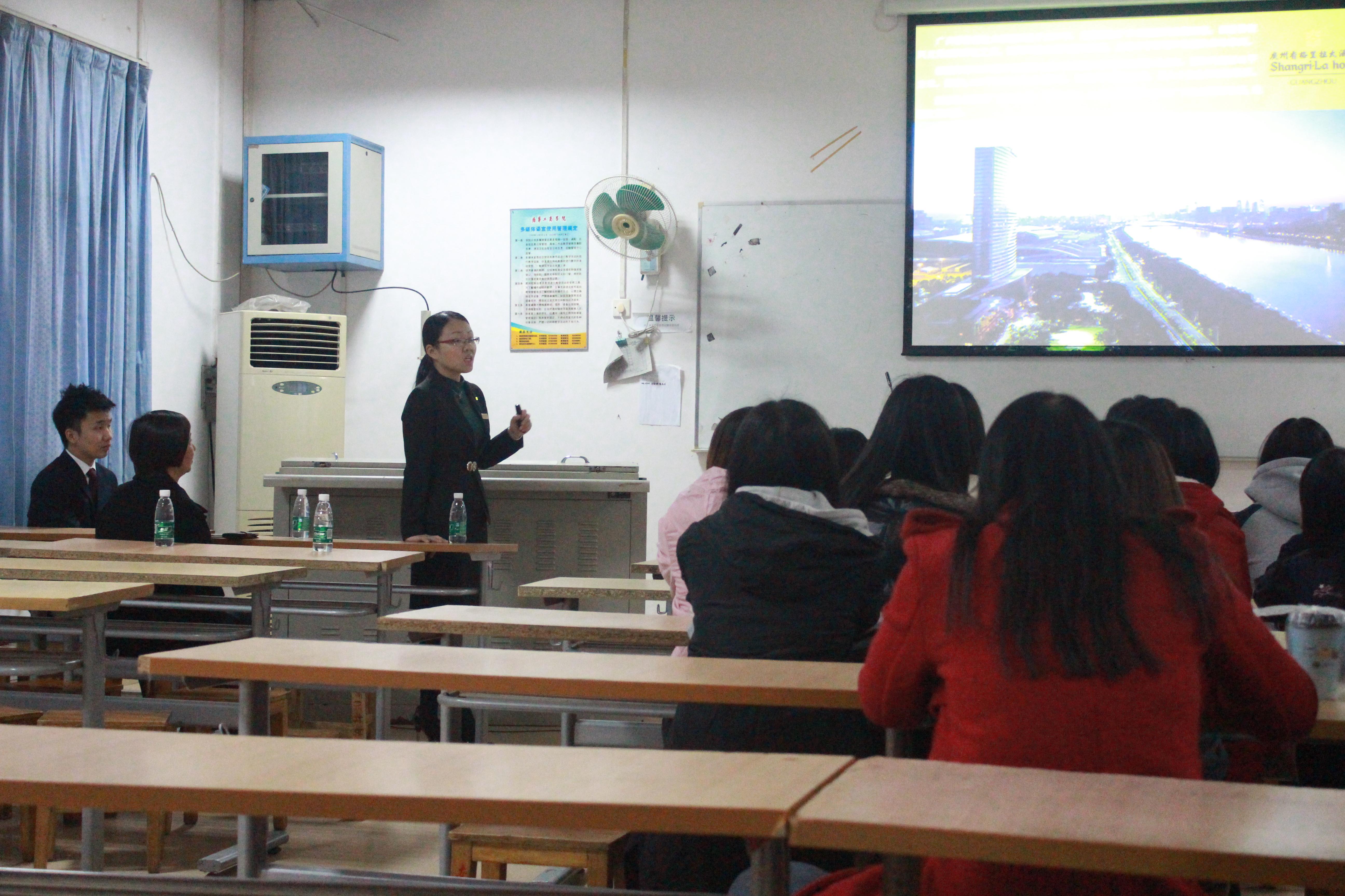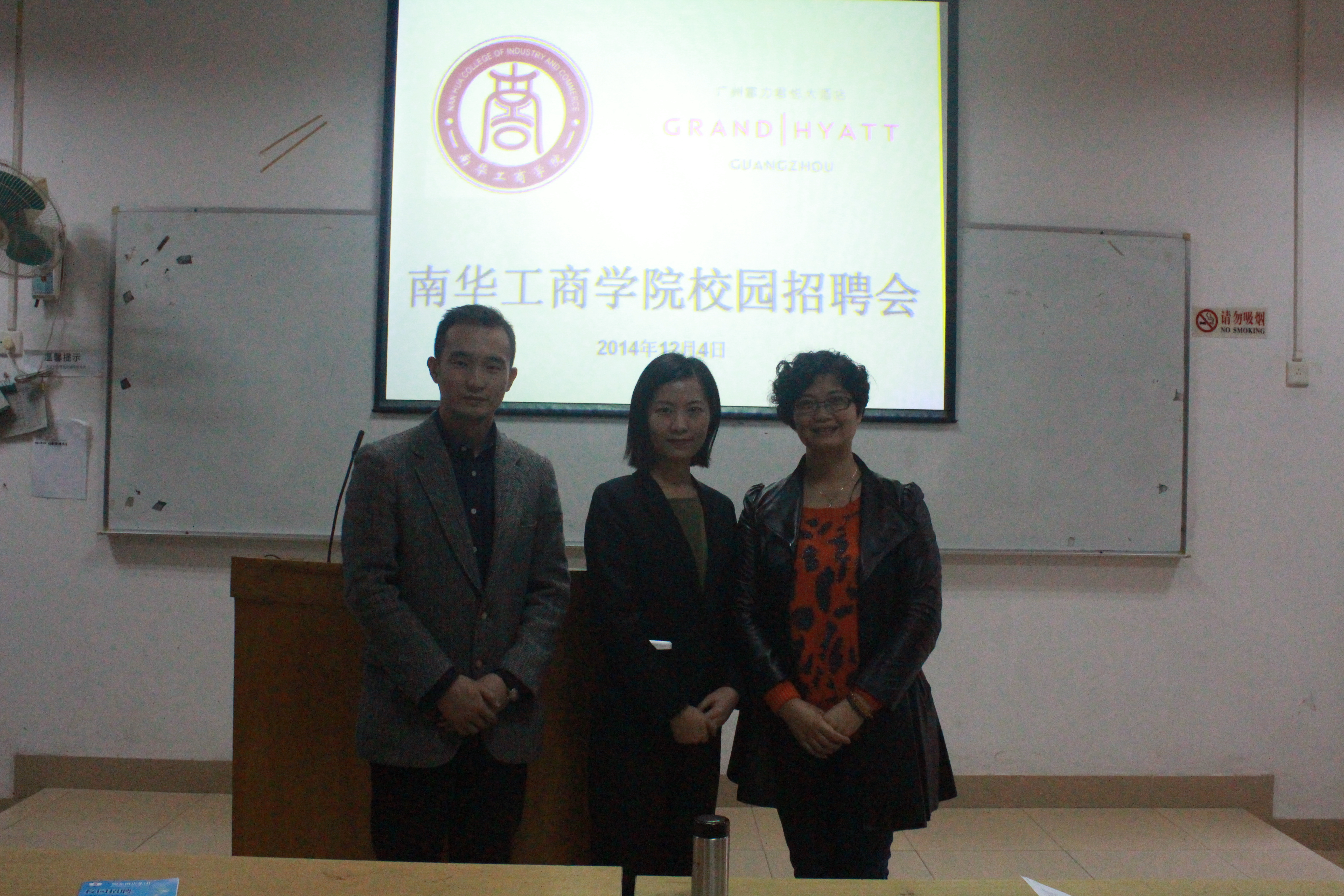 12月4日下1:30—5:00,凯悦酒店集团、香格里拉酒店集团、如家酒店集团到我系开展宣讲招聘会。本次宣讲招聘会在黄埔校区北区8栋102课室进行,我系主任胡家夏老师、副主任谭金凤老师、酒店管理专业卢灿辉老师、辅导员熊汝鑫老师、教学秘书杨小衡老师等接待了酒店方一行。