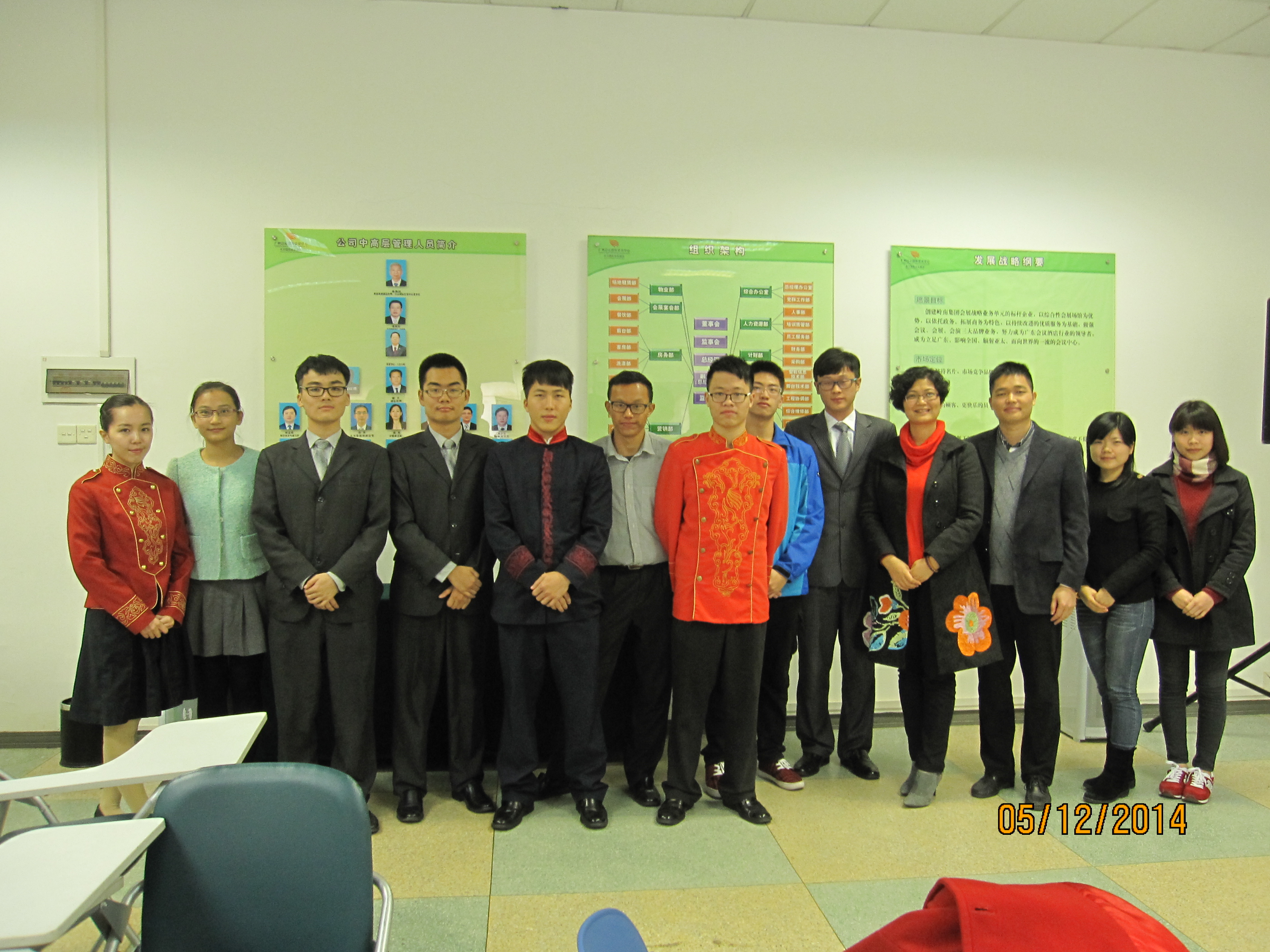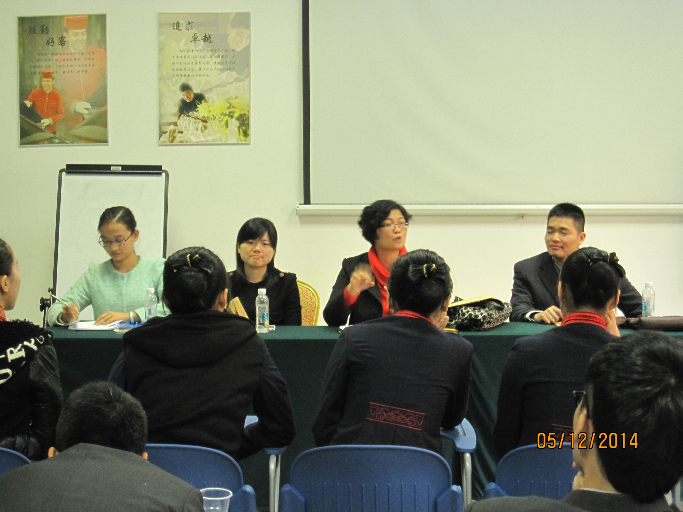 12月5日下午,我系副主任谭金凤老师、旅游管理专业教研室主任梁滔滔老师、酒店管理专业卢灿辉老师、13级辅导员马佩佩老师、教学秘书杨小衡老师等一行前往白云国际会议中心,探望我系12级和13级校企订单班“白云班”实习生,并开展座谈会活动。
